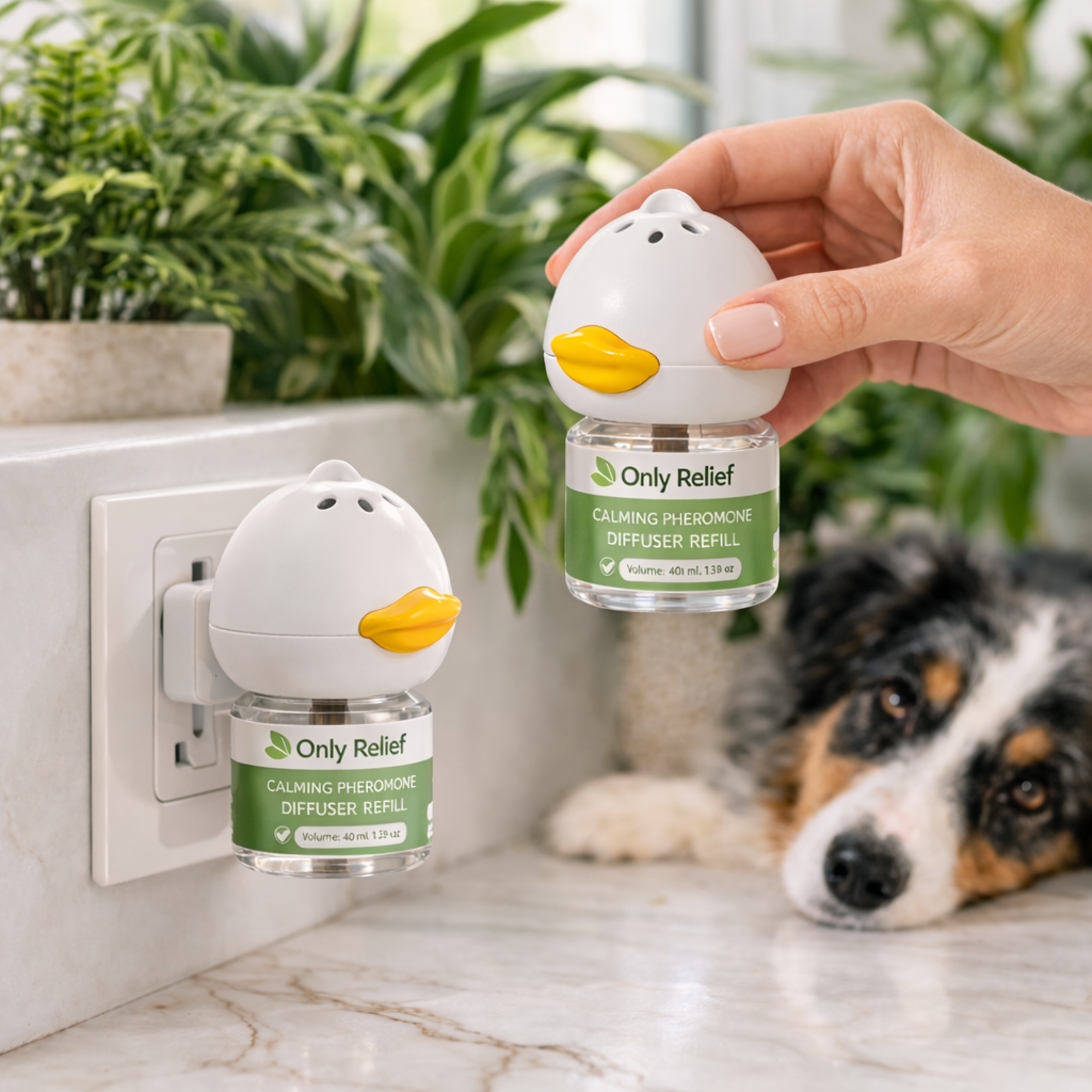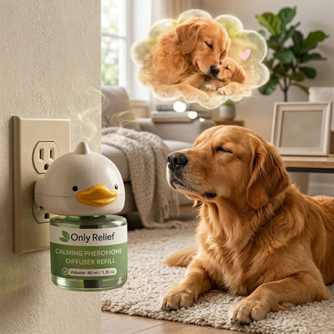By recreating this familiar signal in your home, the Only Relief diffuser helps dogs feel relaxed and secure — reducing stress from separation, loud noises, and unfamiliar situations.