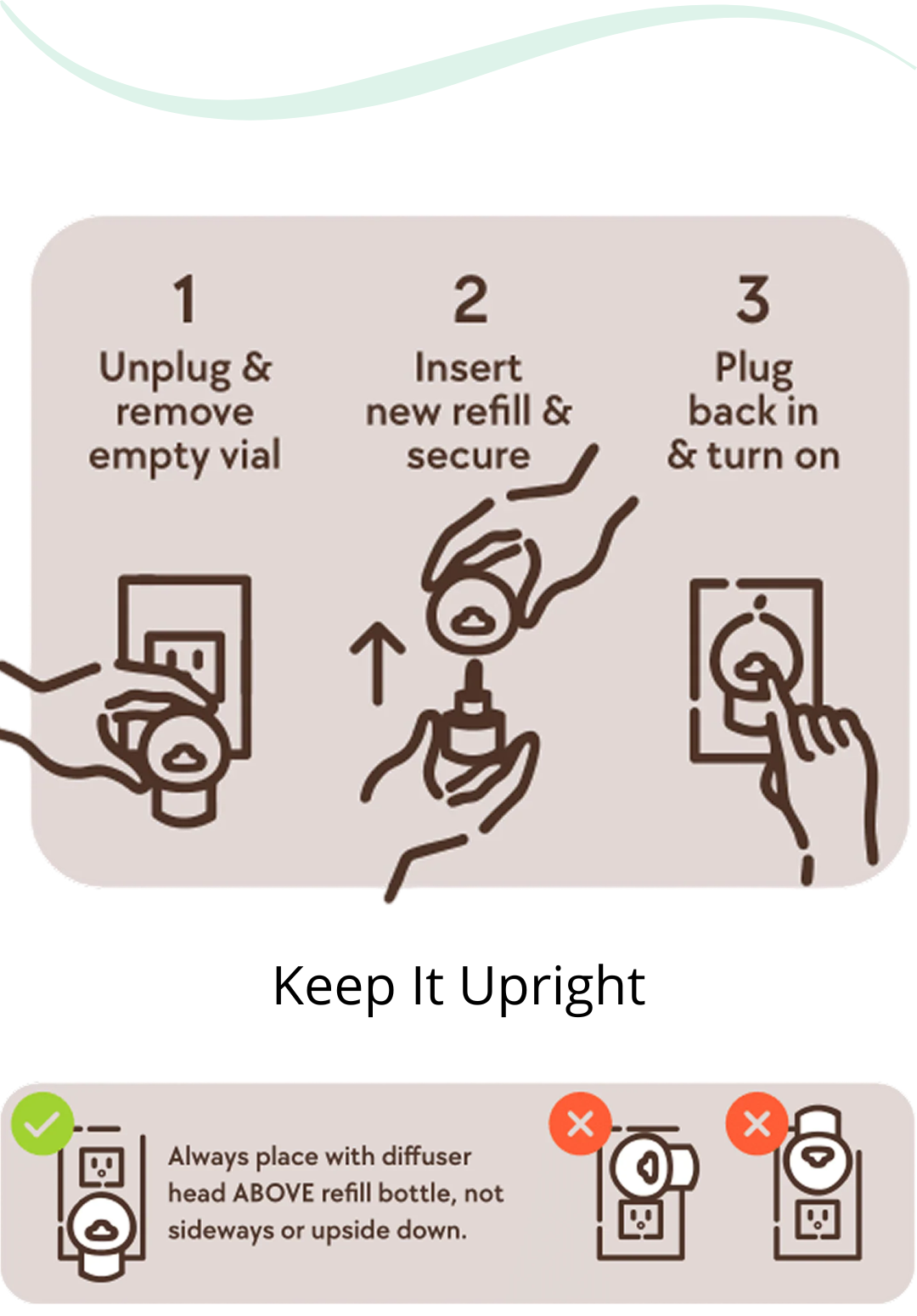 Twist the refill vial into the diffuser until snug